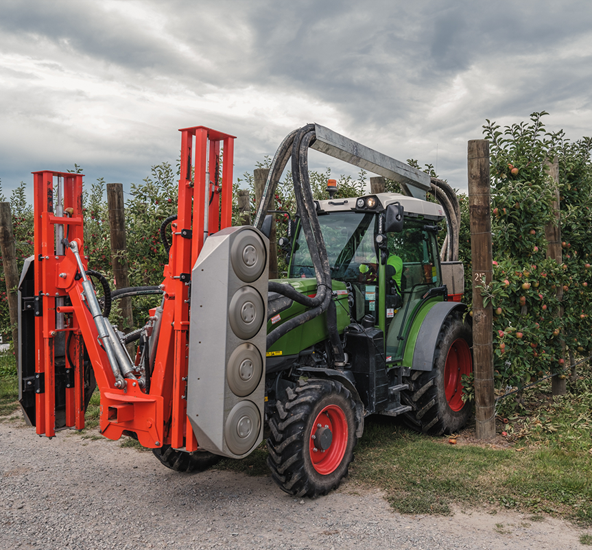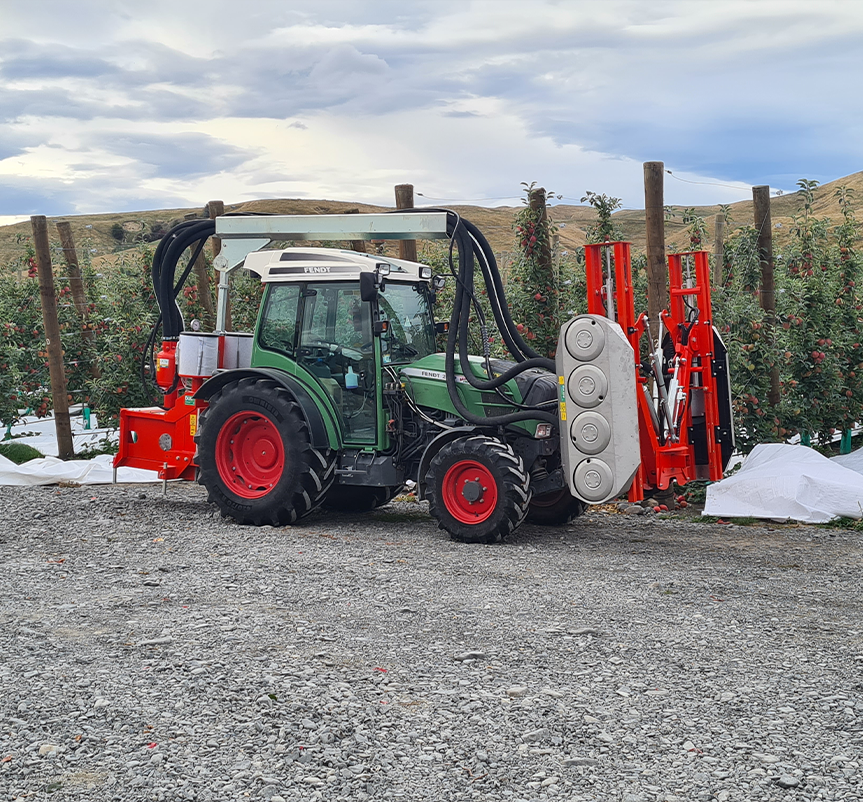 Olmi Leaf Removers make leaf removal quicker and more economical by using high pressure air to shatter excess foliage on trees and vines without damaging fruit. They are a game changer for apple growers because they enable more effective spray coverage and increase sunlight penetration of the canopy so more fruit can achieve high colour. As a result, some growers have reported harvesting their entire crop in just two passes down the rows.