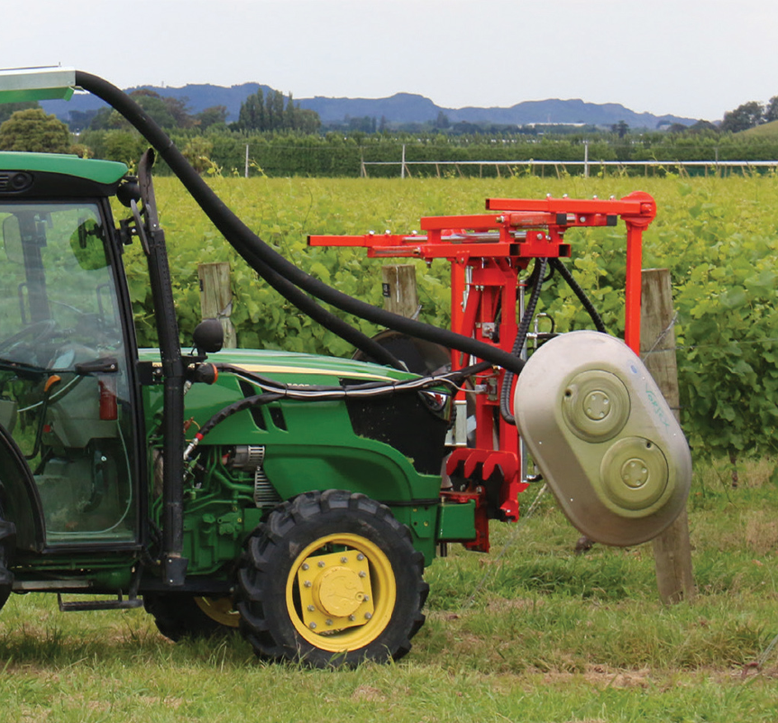 The Olmi 510-R is a rear mounted, double sided over row leaf blower equipped with auto self-centring. It’s designed for working on two full rows at a time to make short work of de-leafing on large scale vineyards.